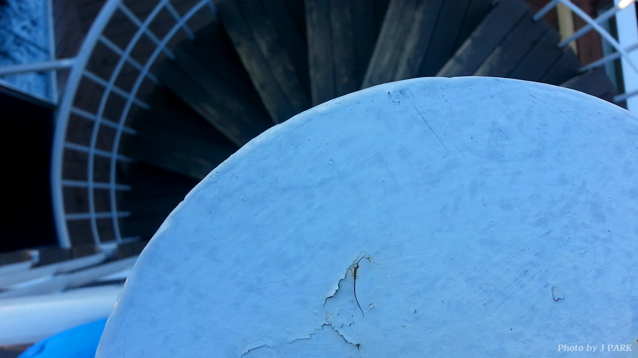 구름빛이 하얀 페인트조차 파아랗게 물들인다.