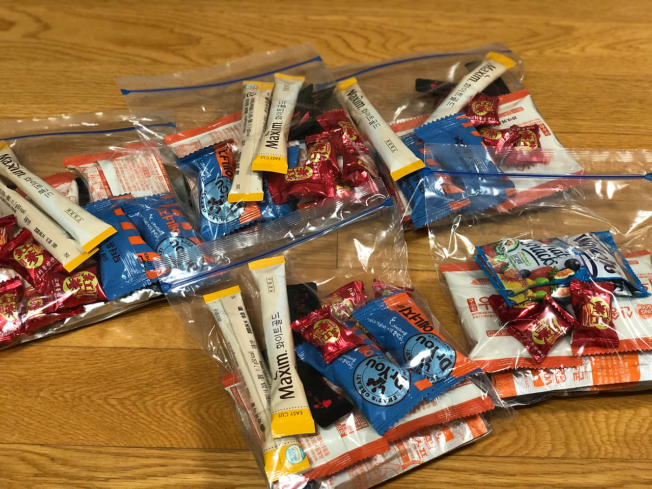 간식을 하루치씩 나누어 담아갔지만 매일매일 같은 양의 간식을 먹는 것이 아니어서 결국 남은 것끼리 다시 담아야했다. 그냥 봉지째로 가져갔으면 됐을 것을 괜한 수고를 했다.