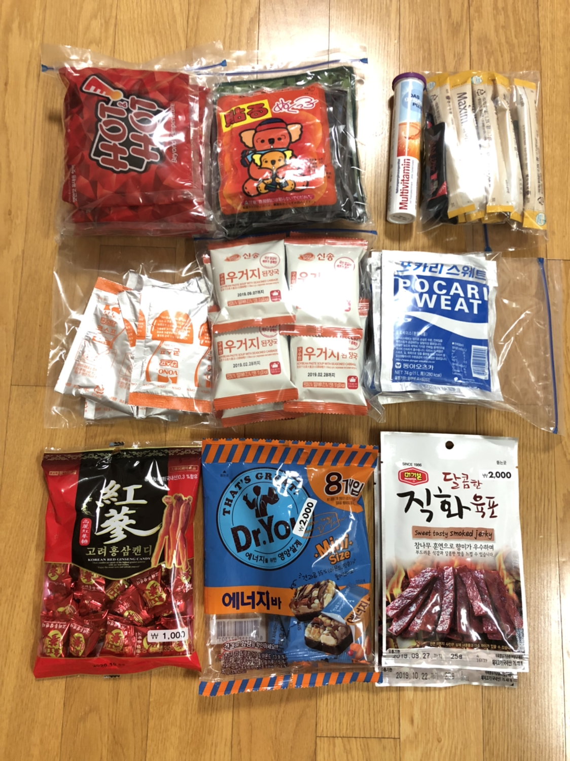 등산을 잘 다니지 않았던터라 소소하게 사야할 것들이 많았다. 회사옆 다이소에 들락날락거리며 준비물을 샀다. 다이소에는 정말 없는 게 없었다. 된장국 분말, 초코바, 홍삼캔디, 믹스커피 등 각종 간식거리를 저렴하게 구입할 수 있었다. 이 외에도 우비, 넥워머, 물티슈, 호루라기, 압축팩 등을 구입했다.