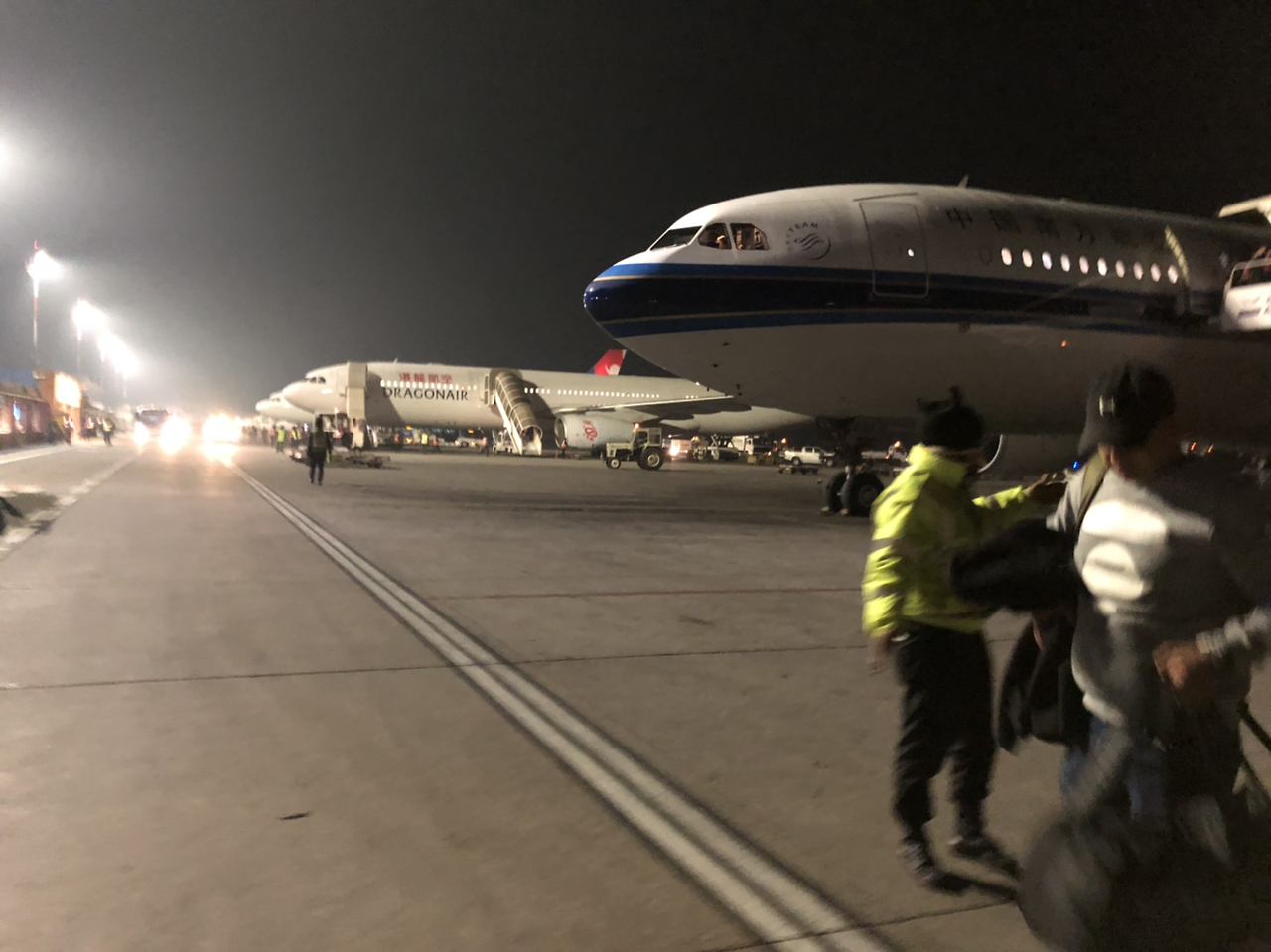 올레 TV 모바일 앱에 열심히 영화를 다운로드 받았는데 비행기모드를 하니 어플이 실행이 안된다. 인터넷이 터져야지만 사용할 수 있는 어플인가보다. 넷플릭스 영화를 다운받았어야 하는데 보지도 못하는 영화 다운받는다고 괜한 고생을 했다. 영화를 못보면 다음은 웹툰이지. 네이버 웹툰의 '호랑이 형님'은 여행때만 보게 되는 것 같다. 지난 방콕여행때 봤던 다음화부터 보기시작했다. 그러다가 잠이 들었고 금새 광저우에 도착했다. 광저우에서의 환승시간도 1시간 정도로 매우 부족했다. 비행기에서 내리자마자 카트만두행 환승하는 여행자를 기다리는 직원이 우리를 기다리고 있었다. 녹색 스티커를 팔에 하나씩 붙여주며 빨리 가라고 했다. 급박한 분위기에 심취되어 우리는 또 땀나게 뛰었다. 이번 여행컨셉이런거였어? 계속 땀나는거? 광저우 공항이 매우 깨끗하고 매우 크다고 생각하며 환승 표지판의 화살표를 따라 계속 뛰었다. 다행히 늦지 않게 비행기에 탑승했다. 비행기는 중국 항공사 최초의 가장 큰 여객기인 A380 여객기였다. 카트만두 도착하면 밤이라서 바로 자야하기 때문에 비행하는 동안 자면 안된다고 한 뇽은 금새 잠이 들어버렸다. '미션 임파서블 폴아웃'과 '히든 피겨스' 영화를 재미지게 보고나니 금새 카트만두에 도착했다. 네팔 공항은 처음부터 신기한 경험이었다. 비행기에서 바로 계단으로 내려 공항으로 걸어들어간다. WELCOME TO NEPAL, 네팔이 우리를 반겨주었다.