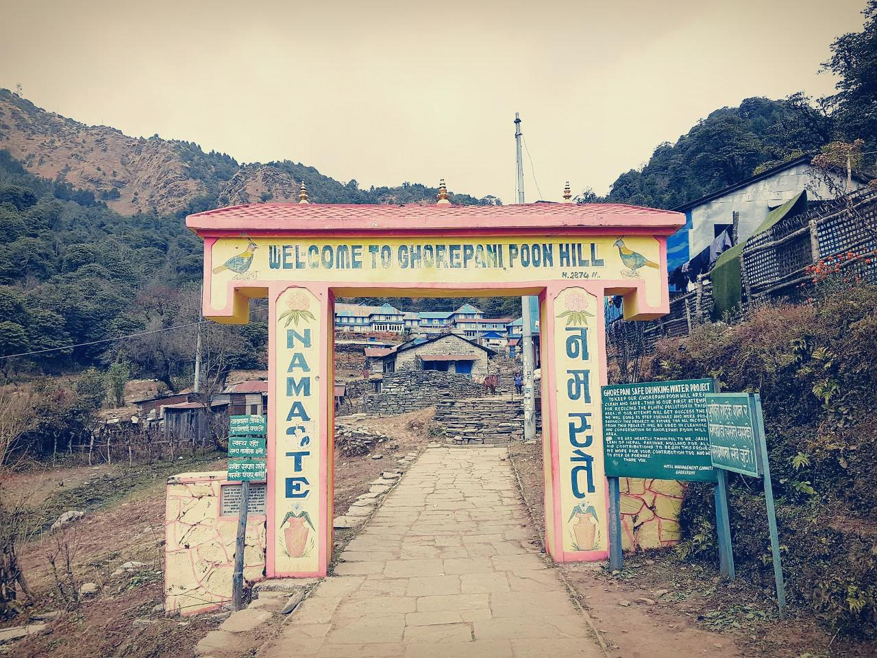 고레파니 마을에 들어왔는데 계속 계단을 올라간다. 푼힐로 올라가는 길을 따라 롯지들이 지어져있다. 푼힐 근처여서 그런지 계단의 경사도가 점점 쎄진다. 15분 더 가야한다고만 했지, 계속 계단이라고는 안했잖아... '푼힐가는 길' 표지판을 따라 계속 올라간다. 우리 롯지는 푼힐전망대로 가는 길에 있는 롯지 중에서 가장 높은 곳에 있는 롯지다. 오늘 높이 올라와놓는 게 내일 도움이 되니 여기로 숙소를 잡았다보다.