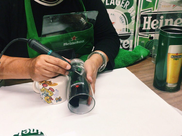 하이네켄 맥주공장은 1980년대 말까지 사용된 맥주 양조장을 박물관으로 개조하고, 여러 체험 프로그램을 운영하고 있는 곳이다. 나름 4D를 선보이며 맥주가 만들어지는 과정을 보여주고, 단계별 맥주를 맛보게 해 주고, 하이네켄에 현혹된 관광객들에게 기념품을 사게끔 유도한다. 나는 컵 두 개를 구입했다. 정성스레 글씨를 새겨주는데 필기체가 너무 예뻐서 감탄하며 동영상도 남겼다.