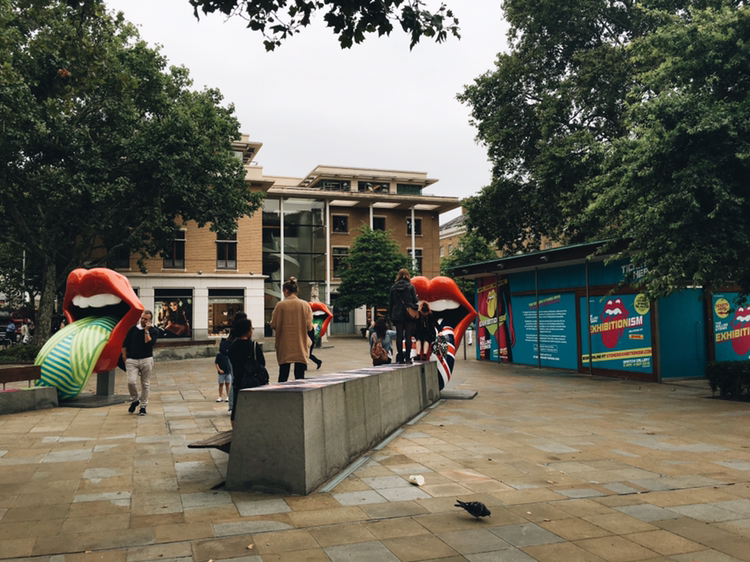 포스터와 조형물이 흐린 하늘과 대조되어 매우 튀었다. 롤링스톤즈의 아이덴티티는 참 오랜 시간 사랑받는 것 같다. 믹 재거의 입술과 혀는 반백년 동안 여전히 유쾌하고 여전히 섹시하다.