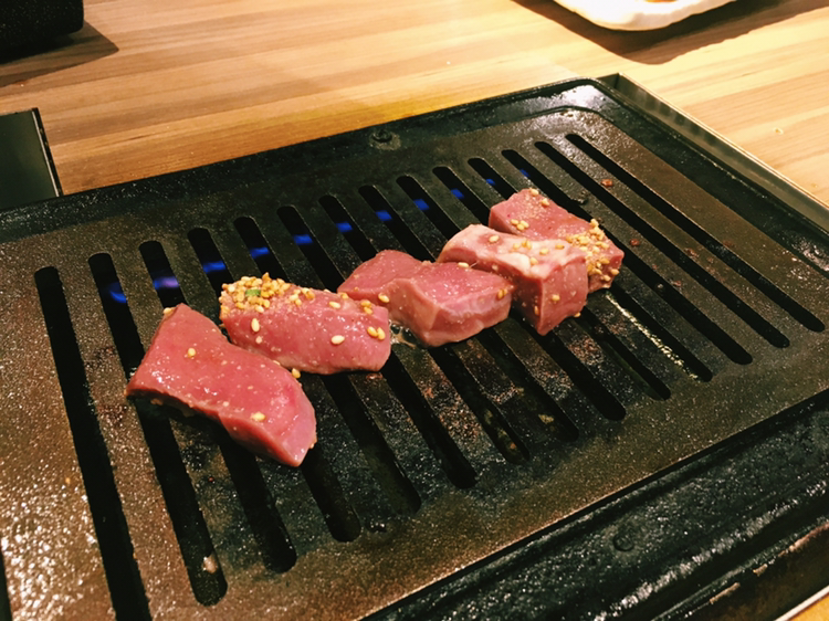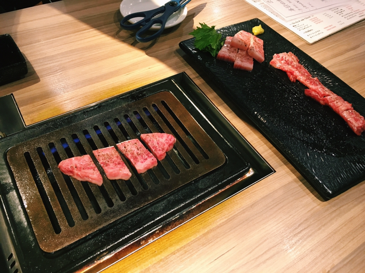 무순이 곁들여진 한 부위가 작은 접시에 담아져 나왔고, 이어 세 부위가 나오면서 불판이 달궈지기 시작했다. 양껏 먹는다면 1인분으로도 모자를 수 있으나 맛있게 먹기 위해서는 둘이 먹어도 괜찮을 양. 특히 여행에서는 하나의 음식으로 너무 배 채우는 건 아쉽다. 게다가 일본 편의점 음식들은 엄청나게 종류도 많고 맛있기 때문에 언제든 간식거리가 들어갈 공간은 확보해 두어야 한다.
