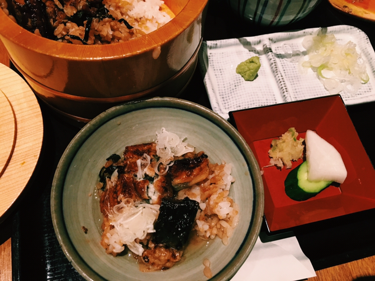 큼지막한 나무 도시락에 밥과 장어가 가득 차 있고, 뜨거운 녹차와 미소국이 나온다. 밥 한 숟가락과 장어 한 점을 입에 넣어도 되지만, 이 곳의 진짜 맛은 작은 공기를 뒤집어 밥과 장어를 적당히 담아 녹차를 붓고 얇게 썰린 파를 띄워 이를 한 입 가득 우물우물거리며 먹는 것이다. 아, 군침 돈다. 봄에 오사카, 교토에 갈 예정인데 그다음은 후쿠오카가 될지도 모르겠다.