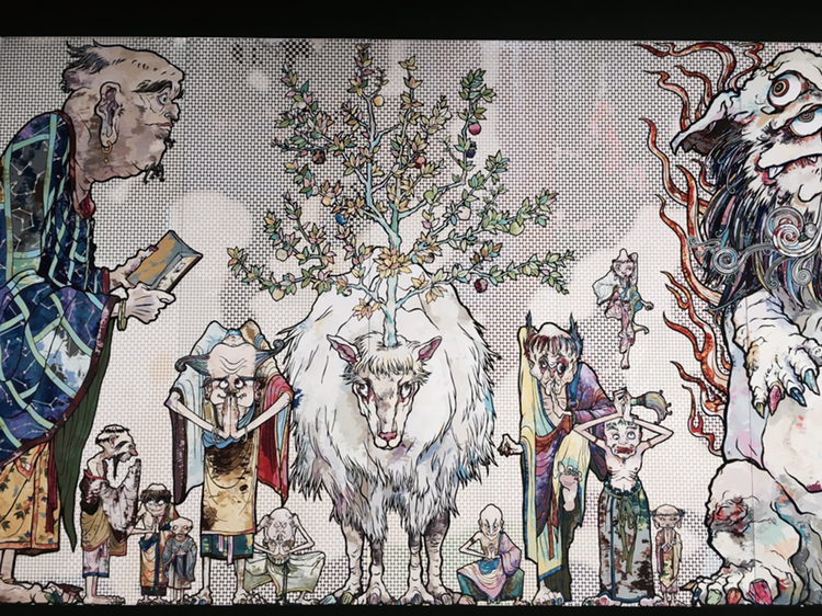 자세한 설명을 찾아서 적을 수는 있지만 별로 그러고 싶지가 않다. 단 하나도 같은 얼굴이 없는 수많은 성자들과 도깨비, 호랑이, 사자, 산양 등 다양한 동물들이 일본을 지켜주는 수호신으로 또는 실태를 보여주기 위한 조연으로 등장한다. 크게 4개의 섹션으로 나뉘는데 이는 동서남북을 지키는 사신 청룡, 백호, 주작, 현무로 대표된다. 이 사신이 혼란스러운 일본을 지켜준다는 의미가 있다는데, 그도 그럴 것이 근래 일본은 자기 위안이 절실한 상황. 그런데 지금 대한민국도 만만치 않다. 자연재해보다는 인재가 참 심하디 심하다. 다시 전시회장으로 돌아가서.