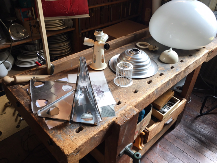 저렇게 여닿는 형태를 가장 먼저 시도한 것이 아킬레 카스티글리오니라는 것을 듣고보니, 전날 전시장에서도 수많은 유사제품을 봤던 것이 기억났다. 모퉁이에 두는 선반과 높낮이 조절이 재미있는 조명은 정말 탐났다.