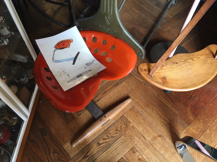 대학시절, 저 스케치가 어찌나 뇌리에 박히던지. 저런 스케치를 좋아해서 내가 스케치를 잘 못했나보다. 세련되고 필력 좋은 스케치는 해 본 기억이 전혀 없다. 메차트로는 반소작인이라는 뜻으로 트랙터 의자를 떼내어 투박함을 그대로 끌고온 디자인이라, 취향에 따라 흉물로 보일 수도 있는 의자다. 앉아보니 생각보다 더 편안하다.