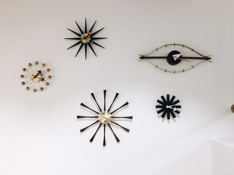 1층에서 2층으로 이어지는 계단 공간 깨끗한 흰 벽은 비트라 벽시계로 채워져 있다. 낯익은 디자인도 있고 저런 것도 있었구나 싶은 것도 있다. 어디에 있어도 포인트 노릇을 톡톡히 할 듯. 1층보다 좀 더 무거운 느낌의 가죽 소재의 소파와 체어가 있고, 그 옆자리마다 작은 협탁과 조명들이 있다. 그에 맞게 패브릭 제품들 컬러톤도 1층과 사뭇 다르다.