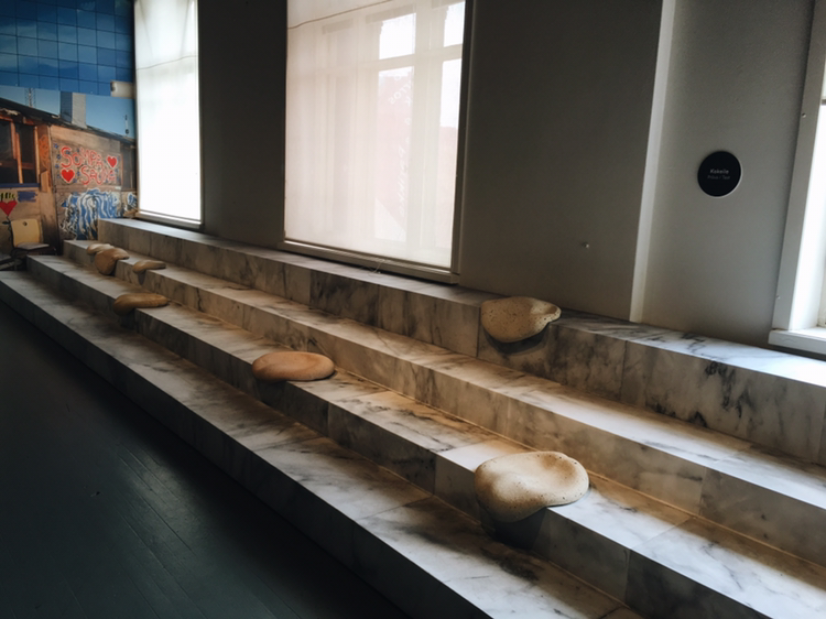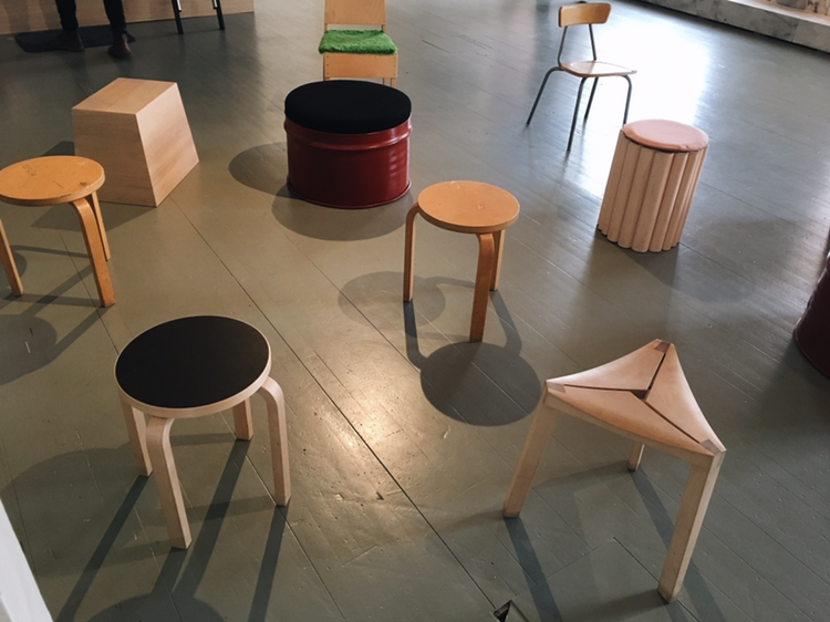 앉아서 머무르는 공간. 정확히 알겠는 건 알바 알토의 스툴뿐이었지만, 전부 눈에 익은 디자인들이었다. 눌러붙은 껌 또는 흘러내린 밀가루반죽같이 생긴 방석에는 잠시 앉아봤다. 침대도 있었는데 어떤 의도로 있었는지 제대로 살펴보지를 못했다.