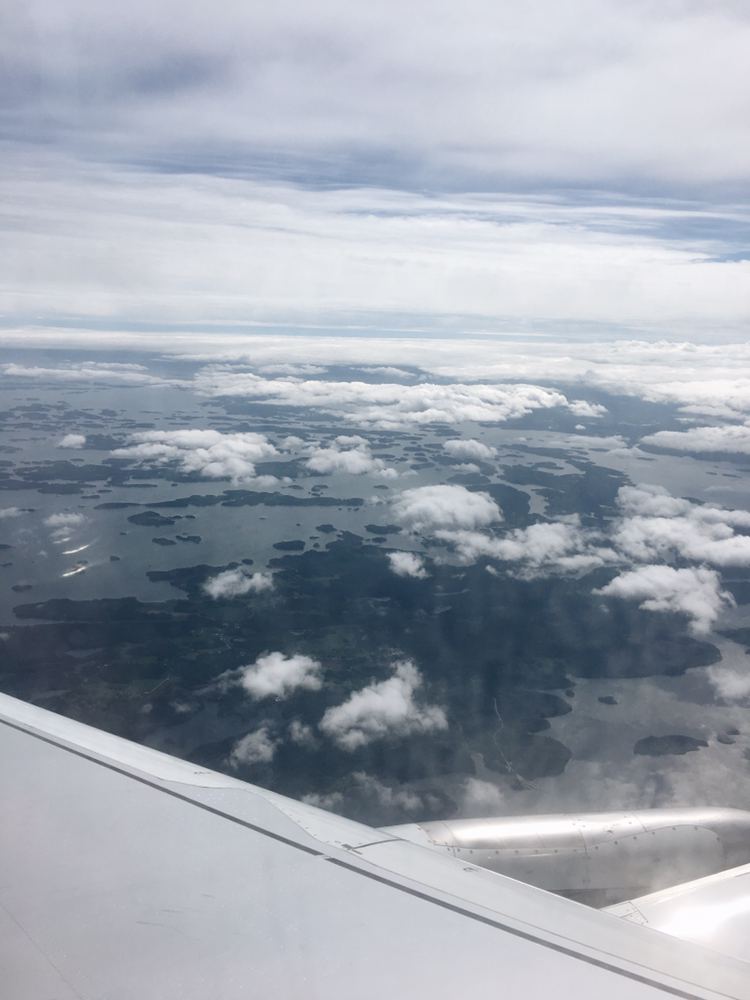 수속이 생각보다 빨리 끝나서 가볍게 샌드위치와 커피를 흡입하면서 구글맵에 꽂아둔 즐겨찾기 핀들을 훑어봤다. 꼭 봐야 할 것, 꼭 먹어야 할 것을 훑어보다 보니 스톡홀름에서 '꼭 사야 할 것'은 체크해둔 것이 없다. 코펜하겐이 마지막 행선지이지만 쇼핑에 여의치 않을 수 있으니, 미루지 말고 스톡홀름에서 뭐라도 좀 사야겠다는 생각이 들었다. 내려다보이는 하늘이 흐려서 날씨 걱정이 조금 되기 시작했다. 추우면 어떡하지, 흐리면 어떡하지.