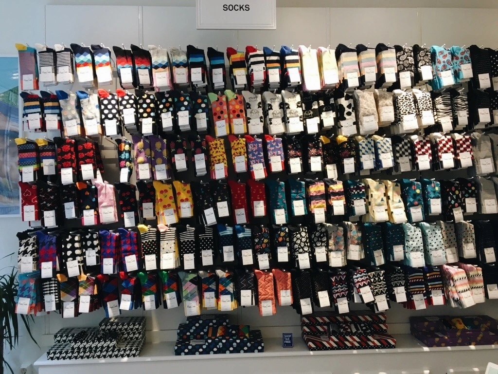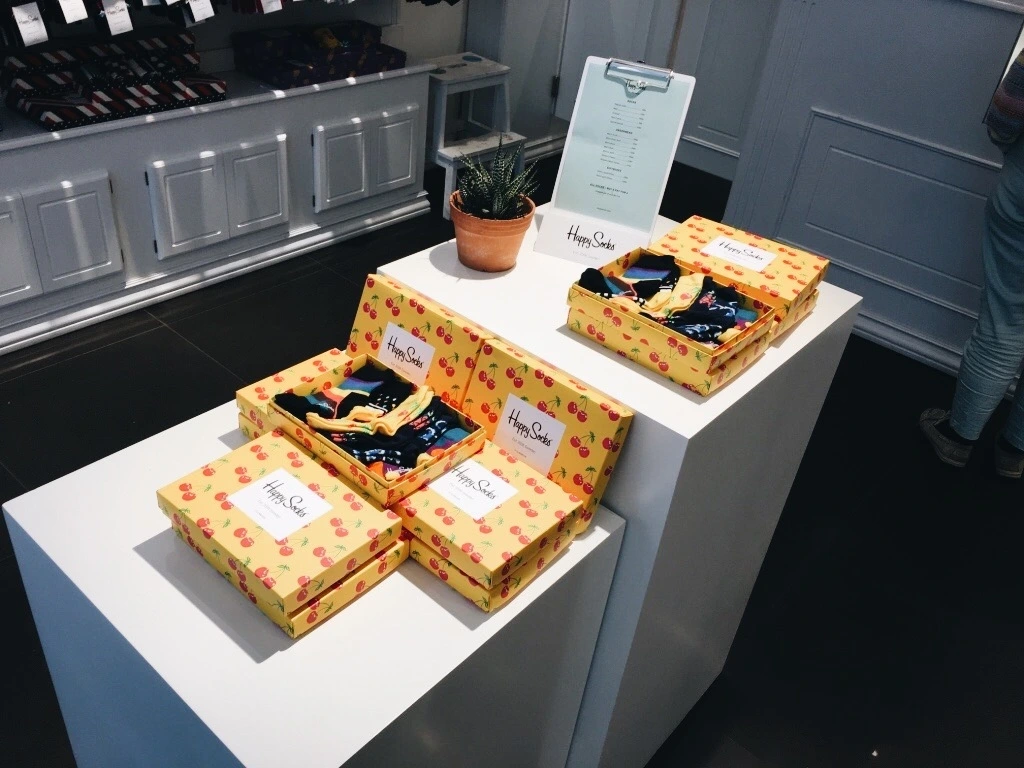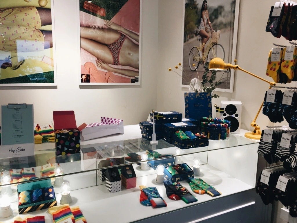타자를 두드리고 있는 지금도 신고 있는 해피 삭스(Happy Socks). 예전에 네덜란드에 갔을 땐가, 패턴이 예뻐서 처음 구입했었다. 그 후에 직구로도 구입한 적 있는데, 배송비도 무료고 세일도 꽤 많이 했던 걸로 기억한다. 스웨덴 브랜드니까 매장에 꼭 들려야지 하고 핀을 찍어 놨었다.
