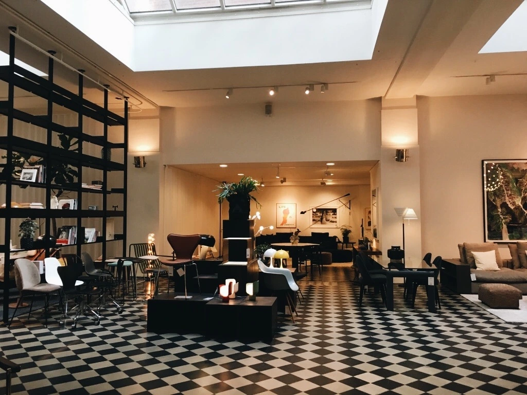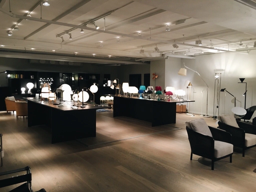 시원하게 들어오는 자연채광과 격자무늬 바닥이 인상적이다. 실내 인공조명을 최소화해서 진열된 판매하는 조명들이 돋보이기도 하고, 위에서 내리쬐어지는 햇살이 딱딱한 매장 분위기보다 생활하는 공간인 것 같은 느낌을 주기도 한다.