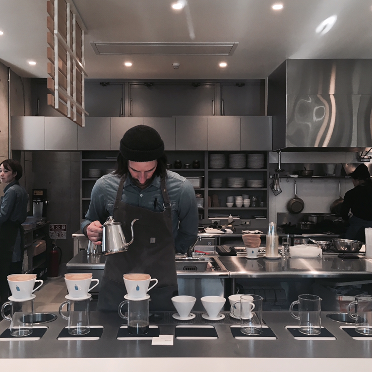 겨울보다는 여름에 더 어울릴 것 같은 인테리어와 가구였다. 다른 지점은 어떠한지 모르겠으나, 오모테산도점은 결론적으로 나쁘지 않았다. 커피 맛을 전문적으로 알지는 못하지만 산도가 강한 것보다 스모키 한 향이 강한 커피가 내 입맛에 더 맞다는 것쯤은 안다. 산도가 꽤 강하게 느껴지는 블루보틀 커피는 내 타입은 아니었다. 하지만 왜 많은 사람들이 찾는지 알 것 같았다. 직원들의 유니폼도 카페 분위기와 잘 어울렸고 모두 친절했다. 내가 마신 커피를 내려준 바리스타는 외국인이었는데(외국에서 외국인이라니), 내가 인스타그램에 위 사진을 올리자 또 오라며 코멘트를 달아주었다. 아마도 틈틈이 자신이 일하는 카페에서 찍힌 사진들을 모니터링 하나보다. 주말마다 새로운 카페를 가고 마음에 드는 사진을 남기게 되면 피드를 올리곤 하는데, 카페나 카페에서 일하는 사람 계정이 코멘트를 달아주거나 사진을 공유하거나 하면 괜히 기분이 좋아진다.
