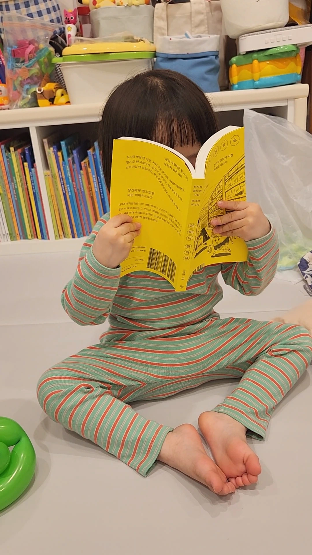 (<어쩌다 편의점>의 첫 독자(우리 딸)가 열심히 책을 읽고.. 아니, 책 냄새를 맡고 있다.)