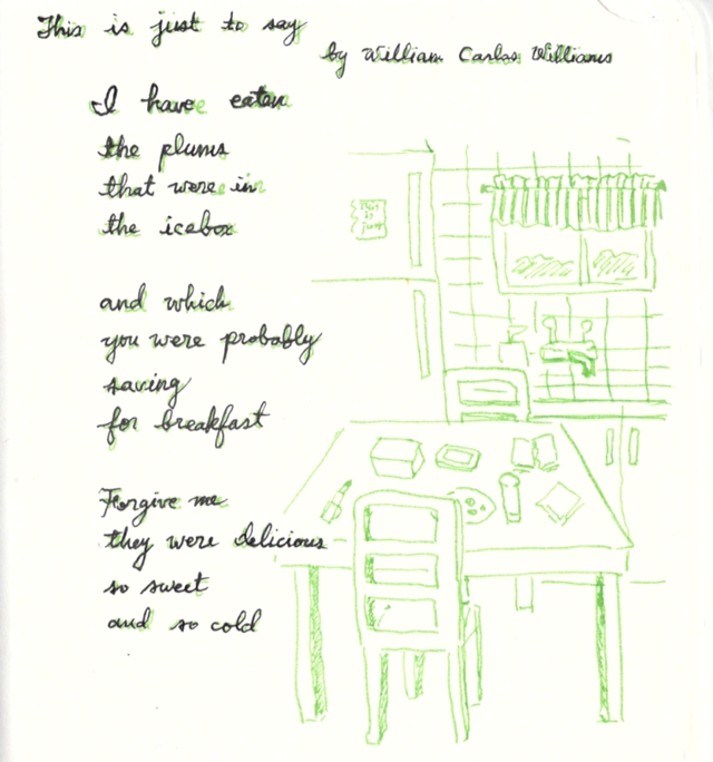 남편인 화자는 부인이 냉동실에 얼려놓은 자두를 다 먹어버렸다. 아침식사를 위해 얼려 놓은 것인데 부인의 허락을 받지 않고 자두를 다 먹은 것이 눈치가 보였는지, 아니면 냉동실에 얼려놓았던 자두가 다 없어져 당황할 부인을 위한 배려인지, 용서해달라는 쪽지를 써서 냉장고에 붙였다.