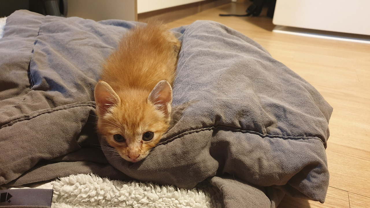 아기 오월이는 사람 우유를 먹어 설사를 하는 채로 우리에게 왔고, 우리 집에 온 지 3-4일쯤 되던 날부터 밥을 잘 먹지 않아 우리를 걱정시켰다. 우리 둘째 봄이도 밥을 잘 먹었고, 작년에 잠시 함께 있었던 봉봉이도 밥 욕심이 엄청났다. 밥을 거부하는 아기고양이를 처음 보았기에 어떻게 해야 하는지도 몰랐고, 아기고양이가 밥을 먹지 않으면 그대로 큰일이라는 것도 몰랐다. 오월이는 잘 움직이지도 않고 밥도 안 먹고 잠만 잤다. 그러다 체온이 떨어져 가는 것이 느껴지자 덜컥 겁이 나서 안고 병원으로 달려갔다. 의사 선생님이 밥을 억지로 주자 오월이가 받아먹었다.