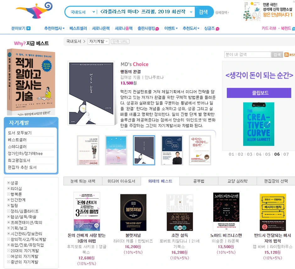 '행동의 완결'이 알라딘 자기계발 서적 분야에서