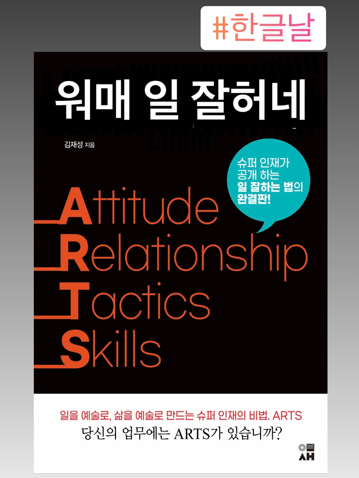 한글 날이니까,슈퍼 업무력 ARTS를 순 우리 말로 바꿔보았다#워매_일잘혀#아따일잘하네#흐미_일이_예술이여#일솜씨가죽이는구먼또 뭐가 있을까요? ㅎㅎ