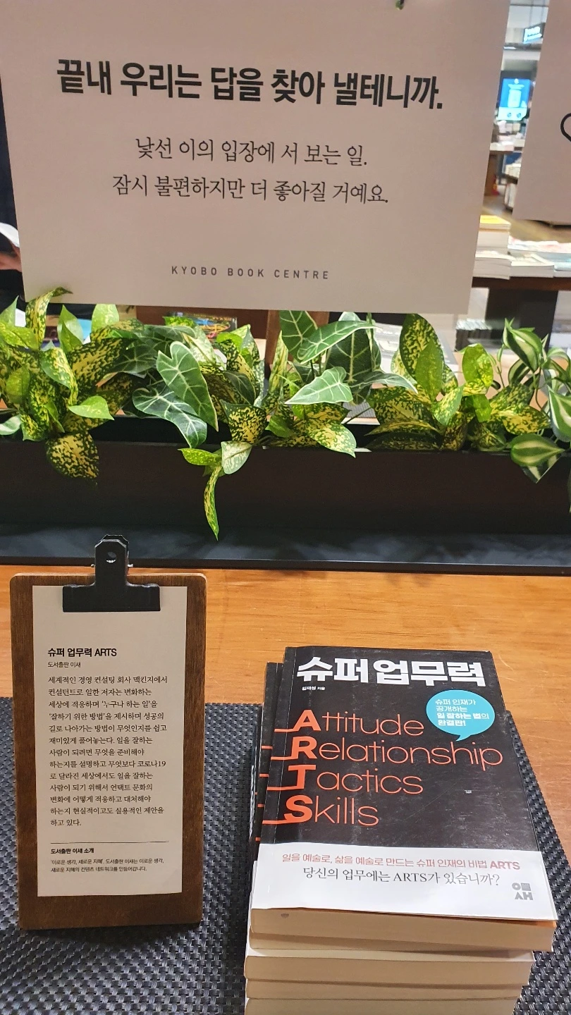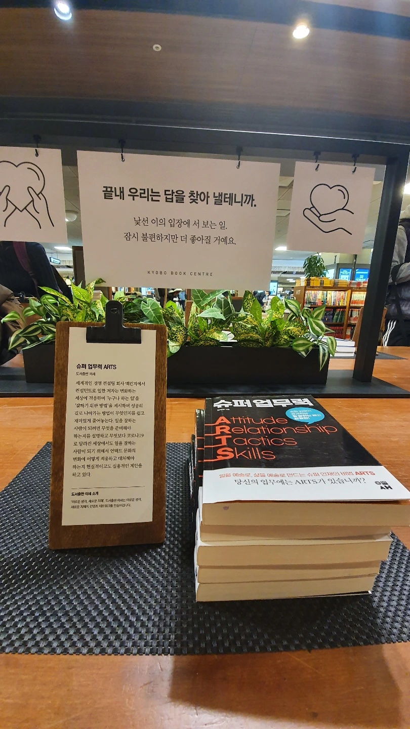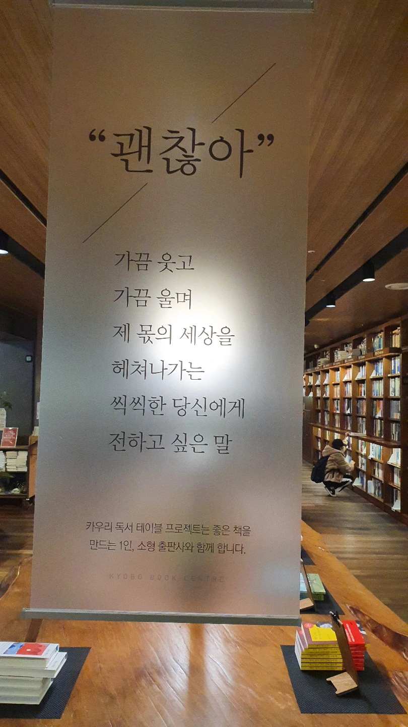 슈퍼업무력이 교보문고 광화문점에 설치된 카우리 독서테이블 기획전<괜찮아> 기획전 50선 도서로 선정 되어 11월 23일까지 진행됩니다.