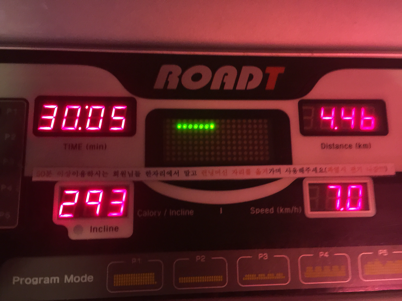 대부분의 러닝 머신에는 시간/거리/칼로리 가 표시되지요