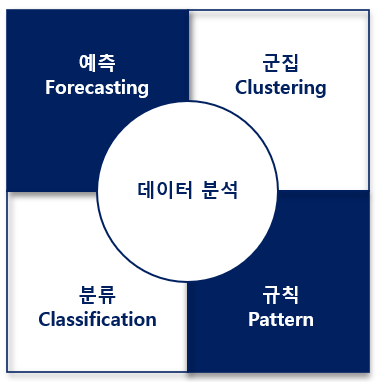 아무튼 데이터 마이닝을 포함한 데이터 분석의 목적은 크게 다음과 같이 4개로 구분할 수 있습니다.