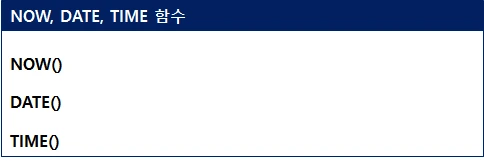 NOW 함수는 날짜와 시간을 모두 포함하고, DATE는 날짜만, TIME은 시간만 시스템으로부터 받아옵니다.