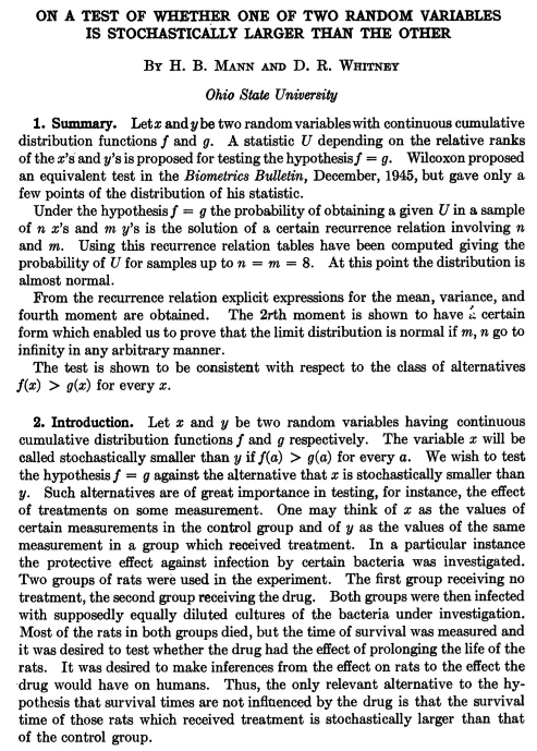 만-위트니 검정이 소개된 논문도 확률에 관한 눈문입니다.