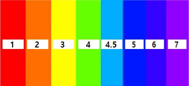 4.5를 무지개 색에 대입해 보니 4와 5에서 거리가 0.5입니다.