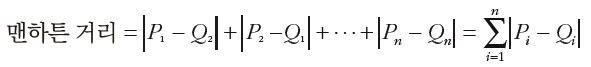 첫번째는 맨해튼 거리Manhattan distance 공식입니다.