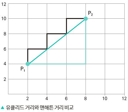 즉, 유클리드 거리는 최단 거리라 할 수 있습니다.