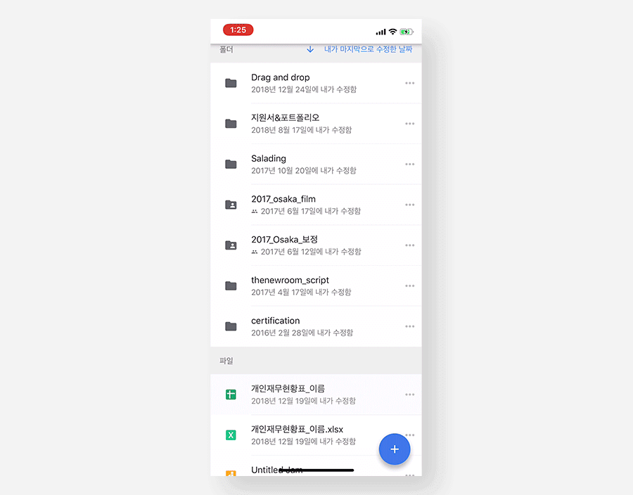 같은 기능을 같은 패턴으로 제공하고 있는 구글 드라이브의 경우, 아이클라우드에 비해 훨씬 다양한 피드백을 제공하고 있습니다.