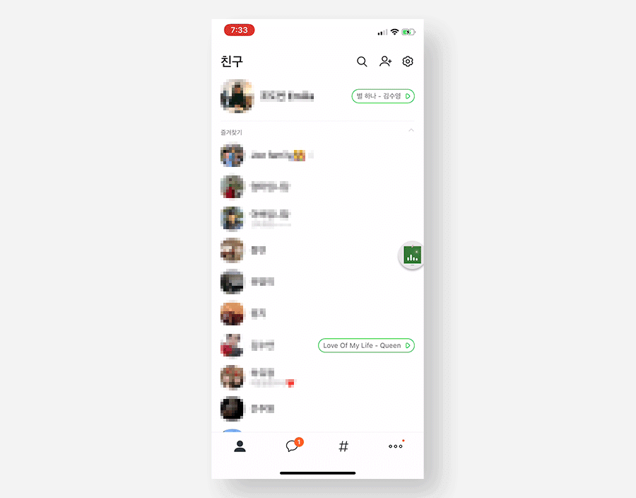 카카오톡은 네이버 판 관리와 같은 기능을 '목록 드래그 앤 드롭 패턴'으로 제공하고 있습니다.