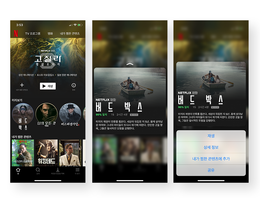 앱 내에서 3D 터치를 활용한 대표적인 예는 넷플릭스입니다.