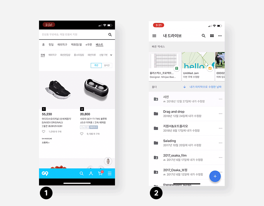 이러한 전환 효과가 사용자에게 어떤 메시지를 전달하는지, 우리가 평소에 흔히 접하는 앱들과 함께 더 자세히 알아보겠습니다.