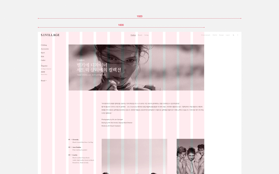 좌우 마진이 결정되면 그 값을 고정한 나머지 영역에 gutter를 적절하게 정의하여 그리드를 생성해서 이를 바탕으로 디자인을 진행하면 된다.