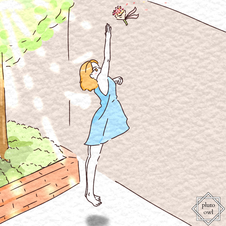 그녀는 그렇게 빛나는 날개를 이용해서 담 건너편에서 건네지는 작은 꽃다발을 받으려 했다...