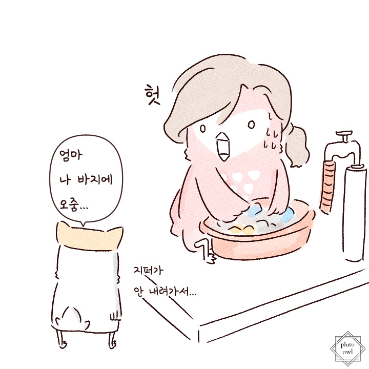 지퍼를 내려주시며 웃는 어머니...