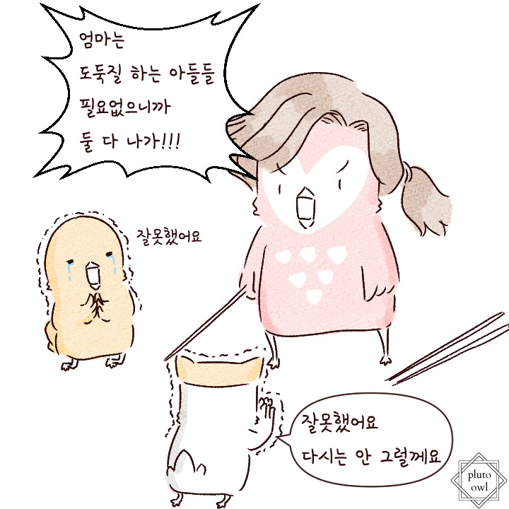 다음부턴 남의 것은 욕심내지 않는다는 약속을 받고, 저녁을 먹었다.