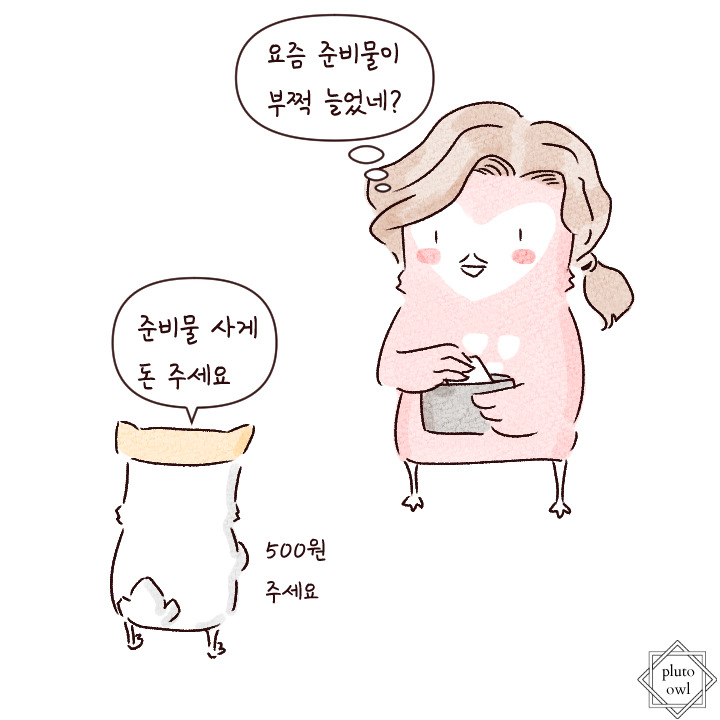 하루 용돈으로 게임을 하기엔 금액이 적으니까 일부러 준비물 가격을 올려 말했다.