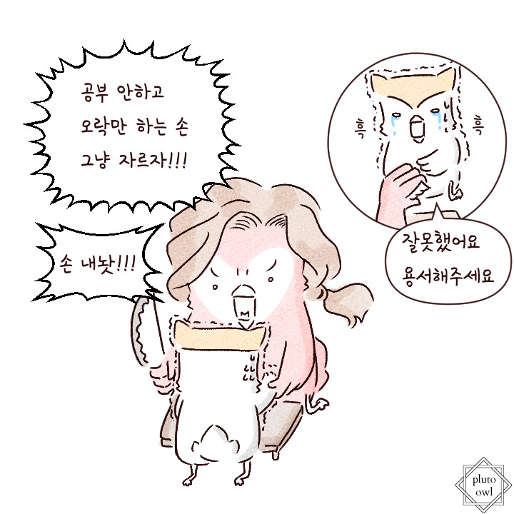 종이리만 맞아봤지, 그렇게 칼을 갖고 오신 건 처음이라 정말 손을 자르실 것 같았다.