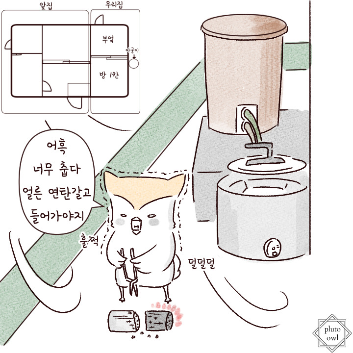 현실적으론 그 집의 보일러가 그 역할을 하기에 조금 씁쓸하긴 하다.