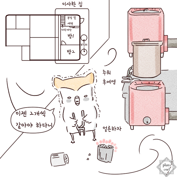 너무나 추울 땐 보일러가 2 개인 게 너무나 싫었다.