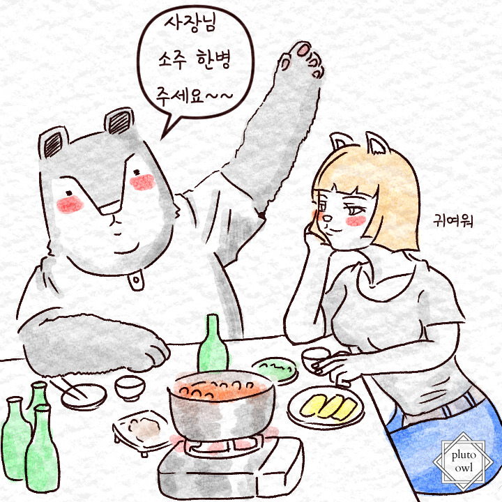 함께 술을 마시면, 남자는 다음날 여자에게 술국을 해줬다.