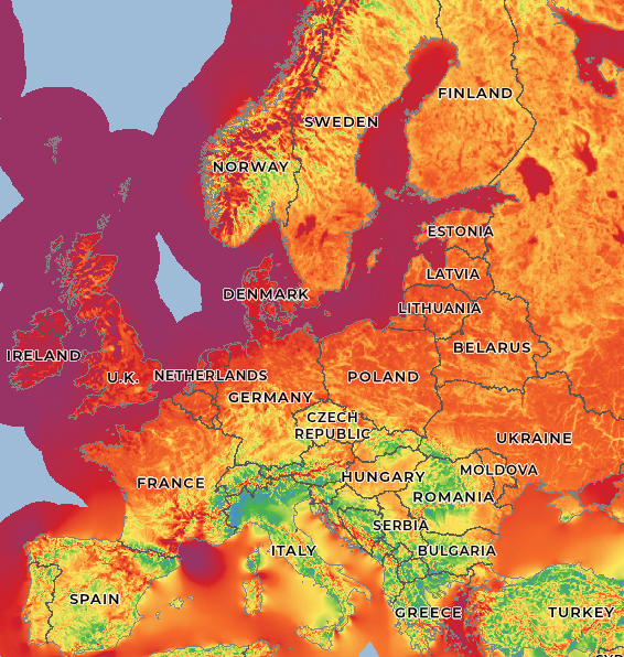 특히, 풍부한 해상 풍력을 보유하고 있는 북해 연안 국가들의 풍력 발전 1인 당 소비량은 2021년 기준 덴마크 7,216kWh, 스웨덴 7,032kWh, 노르웨이 5,633kWh로 전세계에서 가장 높은 소비량을 차지하고 있다. 같은 해 미국은 3,015kWH, 호주 2,719kWH, 중국은 1,188kWH로 서유럽 평균 3,315kWh보다 낮다. 한편, 2020년 기준으로 전체 풍력 발전량을 보면 영국(42%), 독일(31%),네덜란드(10%) 로 유럽 국가들이 풍력 발전을 선도 하고 있다.