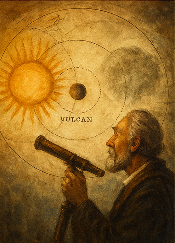1846년, 해왕성을 발견하며 명성을 얻었던 프랑스 천문학자 르베리에는 수성 궤도의 근일점이 조금씩 이동하는 현상을 설명하기 위해 태양과 수성 사이에 ‘벌칸(Vulcan)’이라는 보이지 않는 행성이 있다고 가정했습니다.