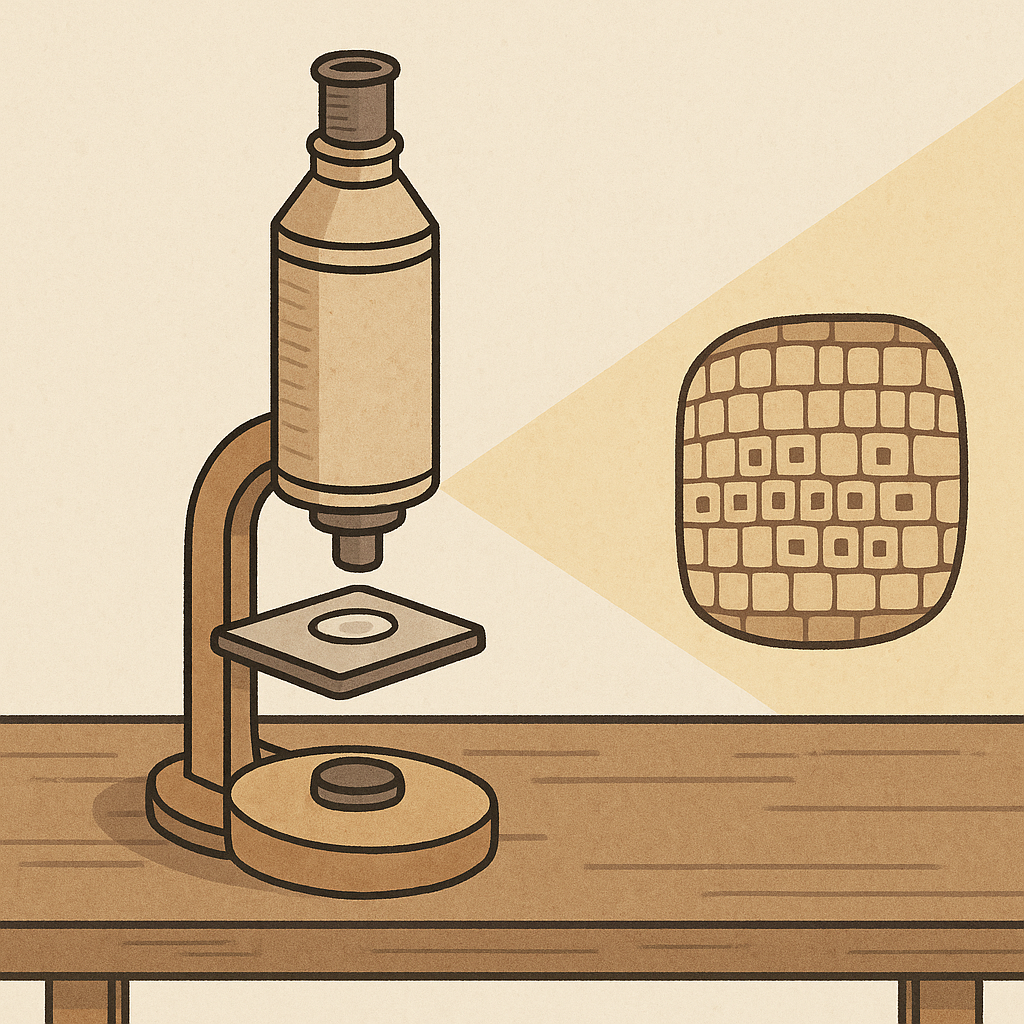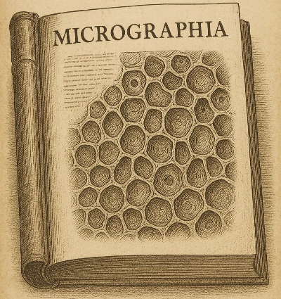 영국의 과학자 로버트 훅(Robert Hooke)은 자신이 개량한 현미경으로 자연을 하나하나 관찰했습니다. 벼룩의 털, 잎맥, 깃털… 육안으로는 볼 수 없던 세계가 펼쳐졌습니다. 1665년, 그는 저서 『마이크로그라피아(Micrographia)』에서 한 조각의 코르크를 관찰한 기록을 남겼습니다. 코르크 속에는 수도원 방(cellula)처럼 보이는 작은 방들이 질서 정연하게 늘어서 있었죠. 훅은 이를 ‘cell(세포)’이라 부르며, 생명체를 이루는 최소 단위에 대한 개념을 처음으로 제시했습니다. 비록 죽은 식물 세포의 흔적이었지만, “생명은 작은 단위로 이루어져 있다”는 통찰은 거대한 첫걸음이었습니다.