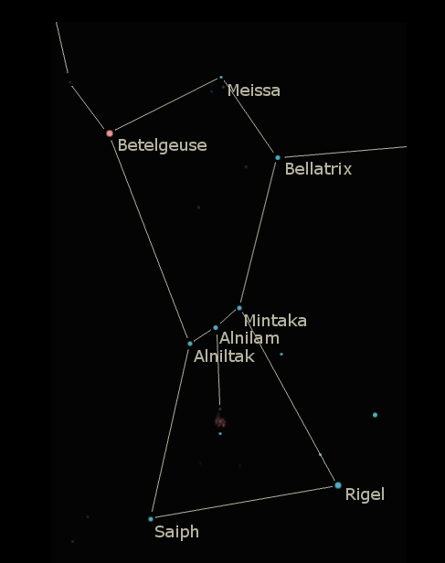 삼태성(오리온의 허리띠)이 정확하게 한 줄로 늘어서 있고,