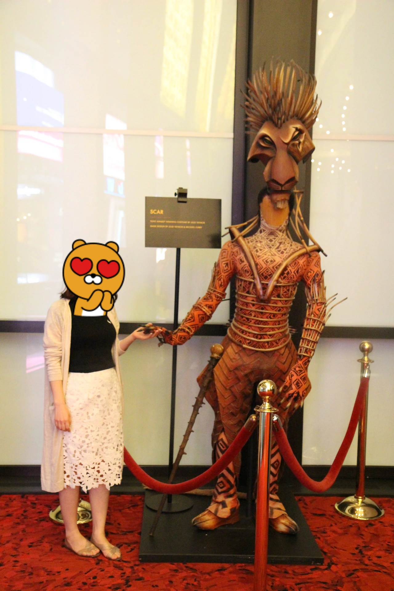 뮤지컬은 상당히 재밌다. 뉴욕 도착 첫날 바로 뮤지컬을 관람해서 시차 적응 때문에 졸지 않을까 걱정했는데, '시차가 뭐야?'라는 질문이 나올 정도로 졸 틈도 없이 신나게 관람할 수 있다. (스페인 마드리드 도착 첫날 관람한 플라멩코는 보다가 엄청 졸았) 특히 동물 표현을 너무나 참신하게 하여, 새로운 동물들이 등장할 때마다 여기저기서 웃음소리가 들린다. 어린이들도 즐겁게 관람하는 것으로 보아, 가족 여행을 뉴욕으로 간다면 필히 관람해야 할 뮤지컬이 라이온 킹이 아닐까 싶다.