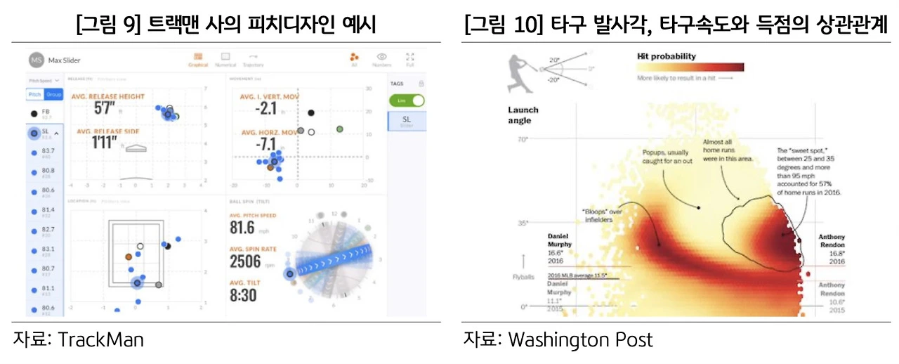 많은 야구팀들은 단순 통계 활용을 넘어 선수의 모든 움직임을 분석해 맞춤형 솔루션을 제시하고 있다. 육안으로 측정이 힘든 데이터들을 수집해서 훈련과 실전에 활용하고 있는 것이다. 트랙맨이라고 하는 투구 분석 시스템을 통해 투수들을 훈련시키는 것이 대표적인 예이다. 과거에는 단순히 볼 끝이 좋다로 끝내던 것이, 이제는 상하좌우 무브먼트, 회전수를 측정하여 타구를 분석하고 있다. 타격 역시 마찬가지로 최근 메이저리그에서 벌어지고 있는 '발사각 혁명'이 대표적이다. 배트로 공을 맞춰 공을 띄우는 정도인 '발사각'을 높일수록 장타로 이어져 점수를 낼 확률이 높아진다는 것을 알게 된 후, 메이저리그의 많은 타자들은 공을 띄우는 데 집중하고 있다. 이러한 트렌드는 국내에서도 이어지고 있다.